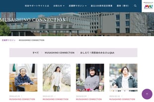 学校法人武蔵野大学さまの校友サポートサイトにて、「MUSASHINO CONNECTION」という企画の取材執筆、および写真撮影を行っています。武蔵野女子学院中学校(現 武蔵野大学中学校)や武蔵野女子学院高等学校(現 武蔵野大学高等学校)、武蔵野女子大学や武蔵野大学の卒業生にお話を伺う連載です。
